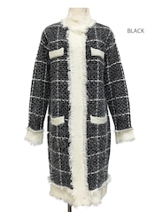 シャギーな毛足に大き目のグリッドチェック柄がかわいいガウンコートです。