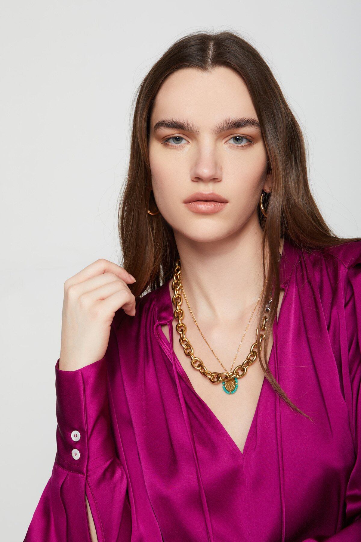 プリーツ付きビスコースジャンパーは、大人っぽい印象を与えるデザインが特徴です。上品な光沢感があり、着るだけで女性らしさを引き立てます。さらに、襟元のプリーツデザインがアクセントとなり、おしゃれな雰囲気を演出してくれます。