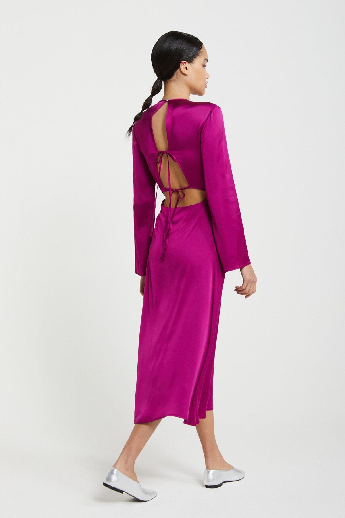 プリーツと背中が開いた純粋なビスコースの流体ドレス。